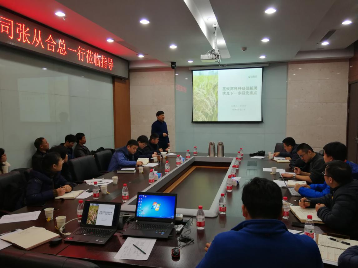 ??? 會上,陳俊仁副主任從基因編輯、基因組、水稻育種等方面對科技中心工作內(nèi)容、生物技術(shù)以及期待對接點進行了介紹。張從合副總介紹了荃銀科研現(xiàn)狀及下一步研發(fā)重點,并提出了科研育種相關(guān)需求。
