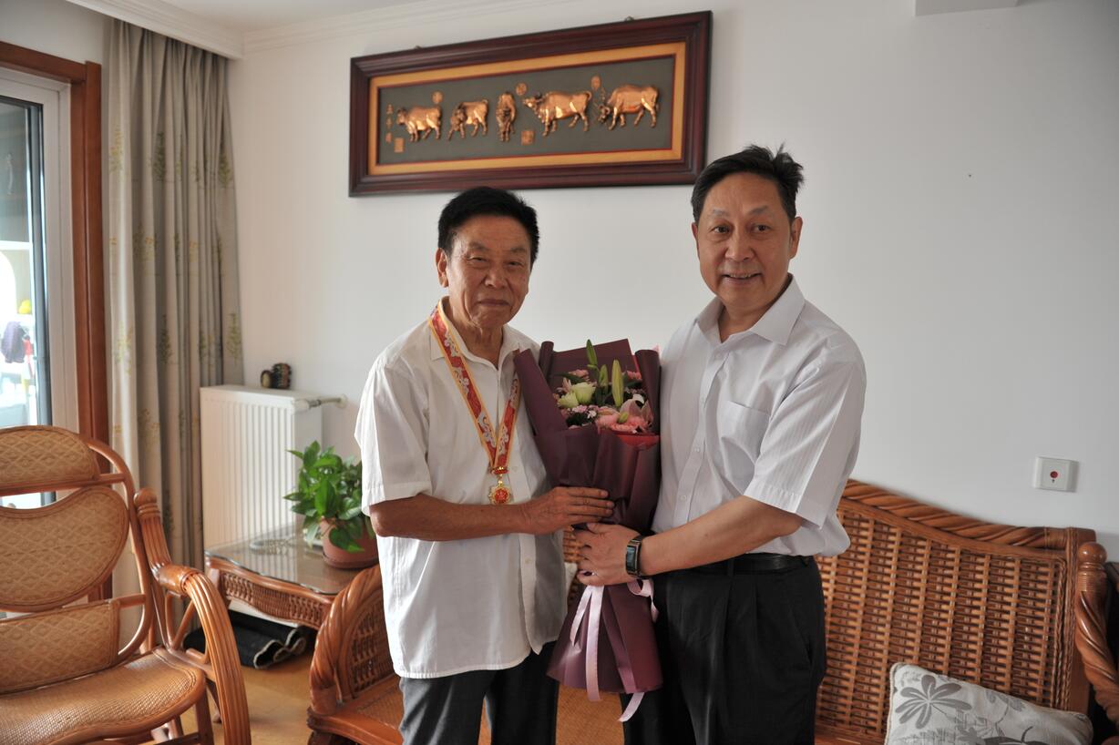 ??? 近日,中共中央、國務院、中央軍委聯合向全國頒發“慶祝中華人民共和國成立70周年”紀念章活動,以慶祝中國人民共和國成立70周年。9月25日,安徽省科學技術獎勵工作辦公室劉瑞奇主任一行代表安徽省人民政府,將“慶祝中華人民共和國成立70周年”紀念章頒發給“中國種業十大功勛人物”、安徽荃銀高科種業股份有限公司創始人、安徽張海銀種業基金會理事長張海銀先生,并送上鮮花,轉達了黨和政府的親切慰問與關懷。