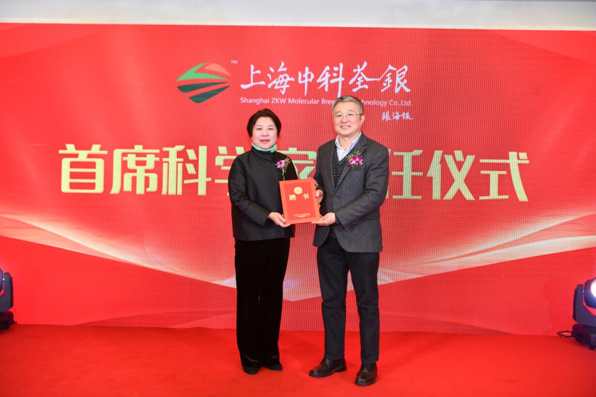 ? ? ?韓斌院士在致辭中首先向關(guān)心支持上海中科荃銀的各位領(lǐng)導(dǎo)、嘉賓表示感謝。他表示,基礎(chǔ)研究與應(yīng)用研究結(jié)合,一定能為育種創(chuàng)新開辟出新路子。上海中科荃銀的成立既有挑戰(zhàn),更是機(jī)遇,上海中科荃銀各團(tuán)隊(duì)將珍惜機(jī)遇,努力為中國種業(yè)技術(shù)創(chuàng)新與技術(shù)進(jìn)步作貢獻(xiàn)!會(huì)上舉行了上海中科荃銀首席科學(xué)家聘任儀式,上海中科荃銀董事長張琴女士為韓斌院士頒發(fā)聘任證書。